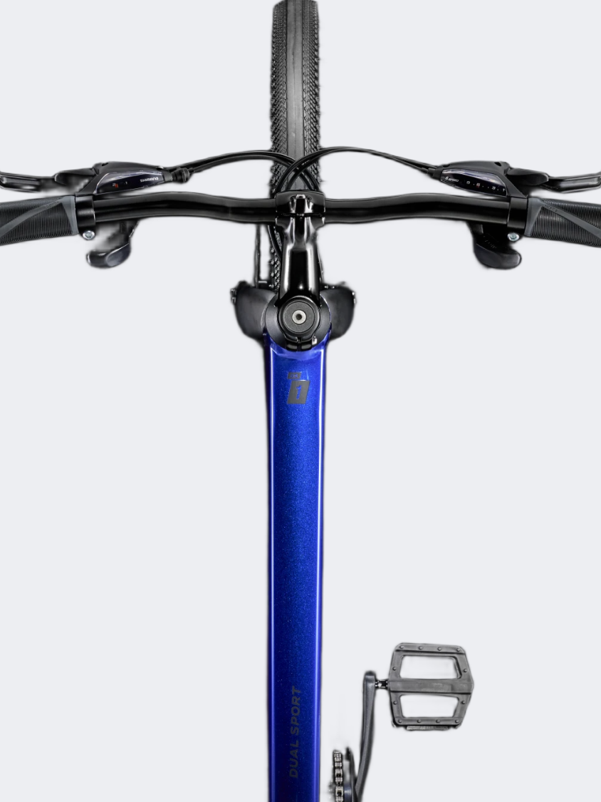 Dual Sport 1 is a go-anywhere hybrid bike that's fun to ride on a variety of surfaces. It has a light frame, a sturdy drivetrain, and powerful brakes. Its wide wheels and tires soak up bumps and rough terrain for a comfortable, confident ride on pavement, light gravel trails, bike paths, and more.