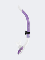 The Fusion Pro is a modern snorkel featuring an upper splashguard to keep water out. The lower flex hose drops conveniently from the mouth for scuba divers who switch to their regulators. There’s a purge valve positioned low to drain any water that enters, and a comfortable silicone mouthpiece that is exchangeable.